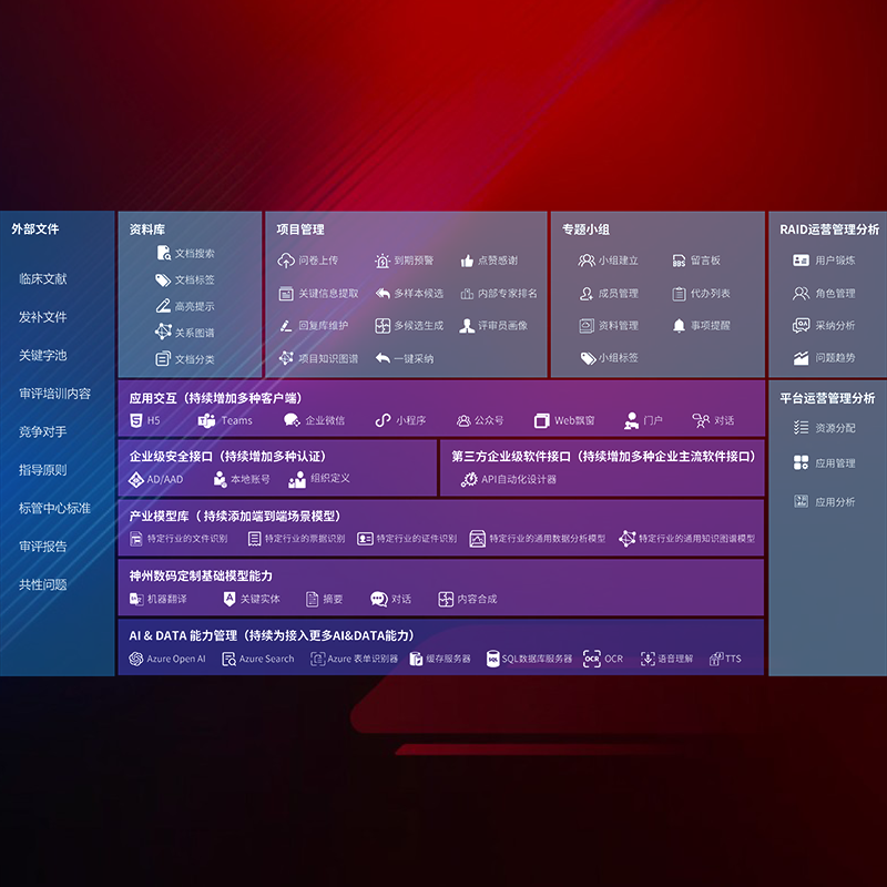 医疗器械产品上市前,,,,要熟悉严格与繁复评审标准,,,,整理分析监管机构指导文件中的海量信息。。。企业急需一个智能化解决方案,,,,提升知识管理效率,,提高评审通过率,,以提升其市场竞争力。。。